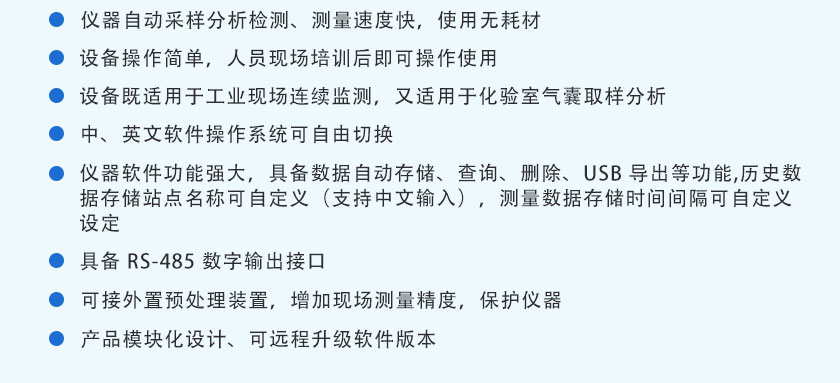 采用自主知識產(chǎn)權的NDIR非分光紅外技術,主要用于測量氣體中的CO、CO2、CH4、C3H8、SO2、NO等氣體的體積濃度及熱值。全進口傳感器、測量精度高、結構簡單、維護方便,軟件功能強大,可拓展性強、現(xiàn)場實用性好,目前暢銷國內(nèi)外。