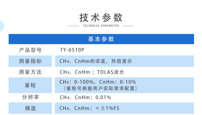 CH4:0-100%;CnHm:0-10%(量程可根據(jù)用戶實際需求配置) |