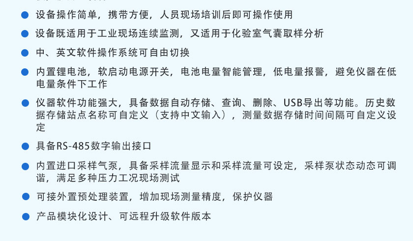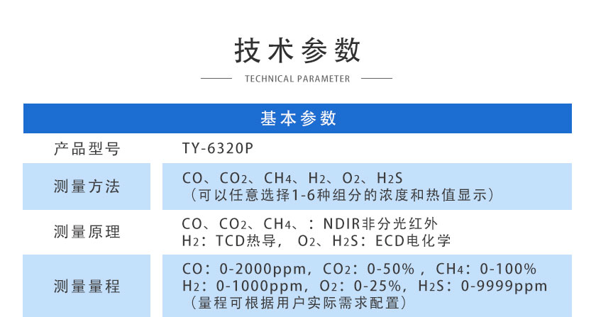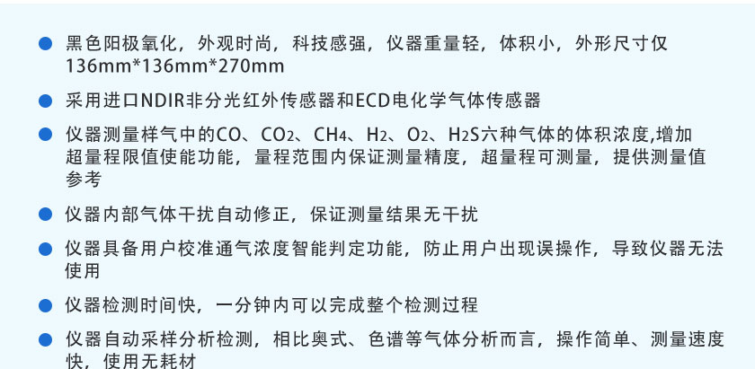 CO、CO2、CH4:NDIR非分光紅外;H2:TCD熱導;O2、H2S:ECD電化學 |