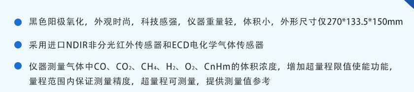 CO/CO2/H2/O2/CH4/CnHm:NDIR; H2:MEMS;O2: ECD |