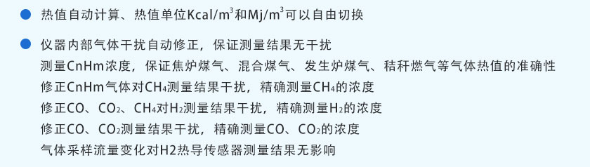 內置進口氣泵,可選配預處理裝置,高值單位Kcal/m3和MJ/m3可自由切換;具備自診斷功能,可在線檢查傳感器狀態 |