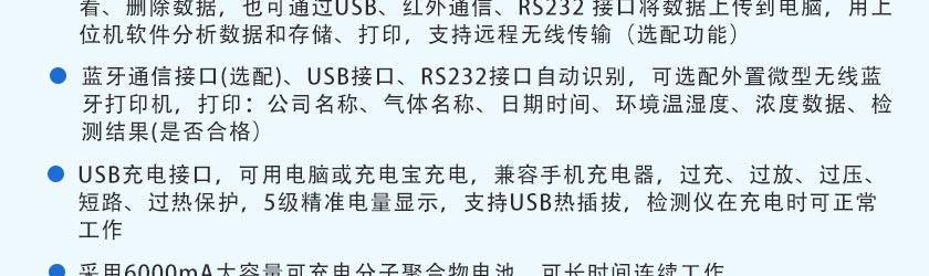 可檢測(cè)任意6種氣體濃度和溫濕度,最多可擴(kuò)展到8種氣體,視傳感器和現(xiàn)場(chǎng)環(huán)境而定 |