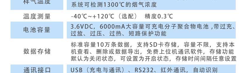 -40℃~+70℃,選配高溫采樣降溫過(guò)濾手柄或高溫高濕度預(yù)處理系統(tǒng)可檢測(cè)1300℃的煙氣濃度 |