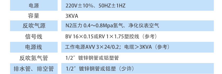 N2壓力 0.4~0.8Mpa氮氣、凈化儀表空氣 |