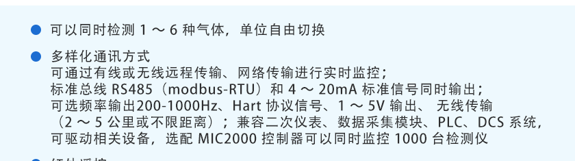 固定式安裝,在線檢測,擴(kuò)散式測量,管道式、流通式、泵吸式可選 |
