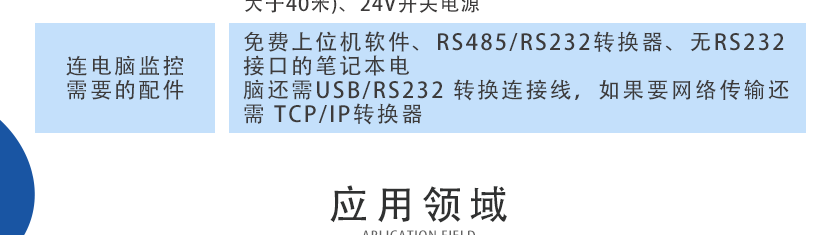 免費(fèi)上位機(jī)軟件、RS485/RS232轉(zhuǎn)換器、無RS232接口的筆記本電腦還需USB/RS232 轉(zhuǎn)換連接線,如果要網(wǎng)絡(luò)傳輸還需 TCP/IP轉(zhuǎn)換器 |