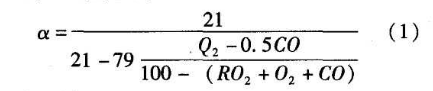 空氣消耗系數(shù)(簡稱α)直接影響爐的燃燒狀況及熱效率、氧化燒損等。α的大小與燃燒種類、燃燒方法、燃燒裝置的結(jié)構(gòu)及其工作好壞都有關(guān)。氣體燃料空氣消耗系數(shù)的經(jīng)驗(yàn)數(shù)據(jù)為n=1.05~1.15.通過氣體成分分析儀,可按以下公式計(jì)算出α。