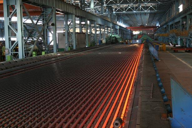 從煉鋼廠出來的鋼坯還僅僅是半成品,必須到軋鋼廠去進(jìn)行軋制以后,才能成為合格的產(chǎn)品。從煉鋼廠送過來的連鑄坯,首先是進(jìn)入加熱爐,然后經(jīng)過初軋機(jī)反復(fù)軋制之后,進(jìn)入精軋機(jī)。軋鋼屬于金屬壓力加工,說簡單點(diǎn),軋鋼板就像壓面條,經(jīng)過搟面杖的多次擠壓與推進(jìn),面就越搟越薄。在熱軋生產(chǎn)線上,軋坯加熱變軟,被輥道送入軋機(jī),最后軋成用戶要求的尺寸。軋鋼是連續(xù)的不間斷的作業(yè),鋼帶在輥道上運(yùn)行速度快,設(shè)備自動(dòng)化程度高,效率也高。熱軋成品分為鋼卷和錠式板兩種,經(jīng)過熱軋后的鋼軌厚度一般在幾個(gè)毫米,如果用戶要求鋼板更薄的話,還要經(jīng)過冷軋。