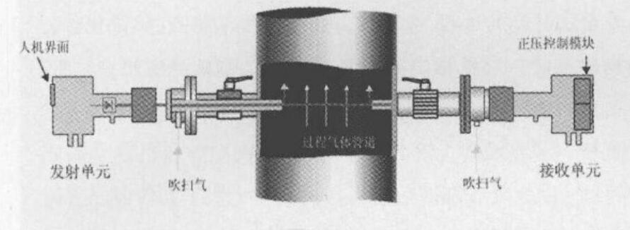 天禹智控激光過程氣體分析系統的測量探頭由發射單元和接收單元組成,發射單元由人機界面、激光器驅動模塊、中央處理模塊、半導體激光器和精密光學元件等器件組成;接收單元由光電傳感器、信號處理模塊、電源模塊和精密光學元件等部分組成;吹掃單元由過濾器、減壓閥和穩流裝置等組成;正壓控制模塊采用隔爆設計,內置壓力傳感、信號處理、電源控制和信息顯示等模塊(見圖1)。