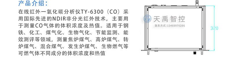 在線紅外氣體分析儀TY-6300采用自主知識產權的NDIR非分光紅外技術,主要用于測量CO、CO2、CH4、C3H8、SO2、NO等氣體的體積濃度及熱值。適用于鋼鐵、化工、煤氣化、生物氣化、節能監測、能效測評等領域,測量焦爐煤氣、高爐煤氣、轉爐煤氣、混合煤氣、發生爐煤氣、生物燃氣等可燃氣體不同成分的體積濃度和熱值。