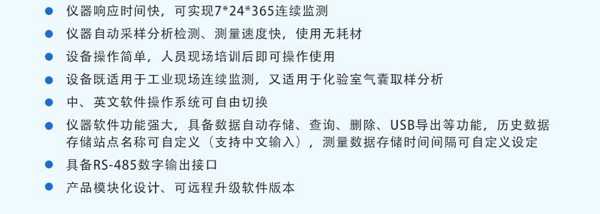 (7)儀器響應時間快,可實現7*24*365連續監測。