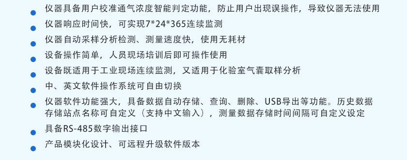 (10)設(shè)備既適用于工業(yè)現(xiàn)場連續(xù)監(jiān)測,又適用于化驗室氣囊取樣分析