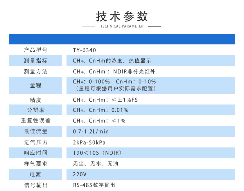 CH4:0-100%,CnHm:0-10%(量程可根據(jù)用戶實際需求配置) |